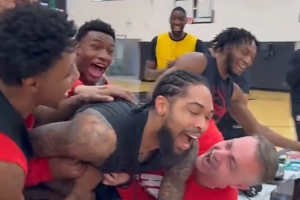 大哥们慢点😂!得知英格拉姆递补全明星后猛龙全队疯狂庆祝